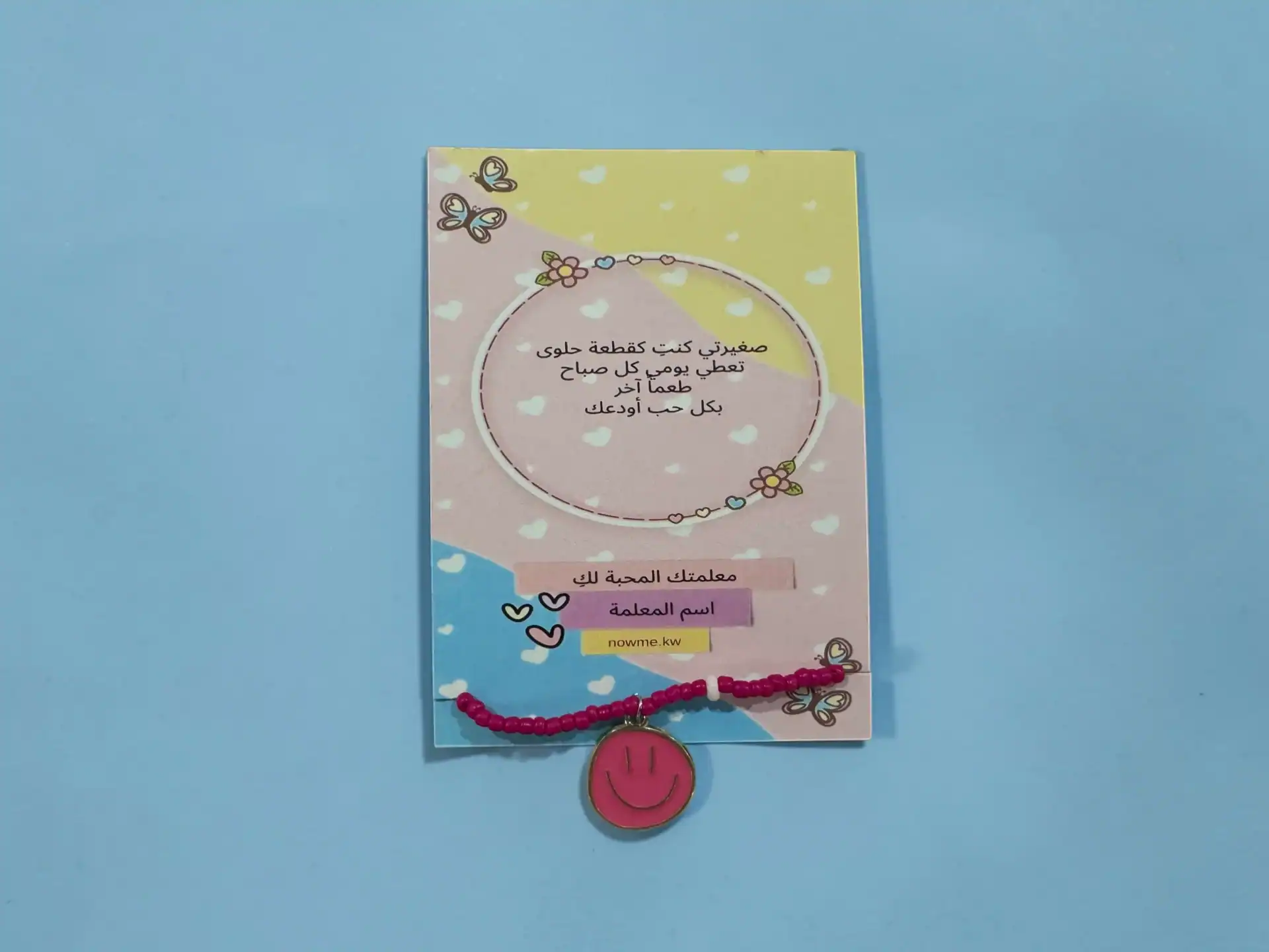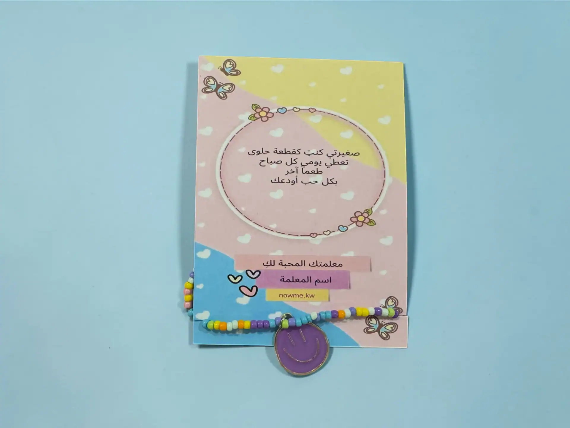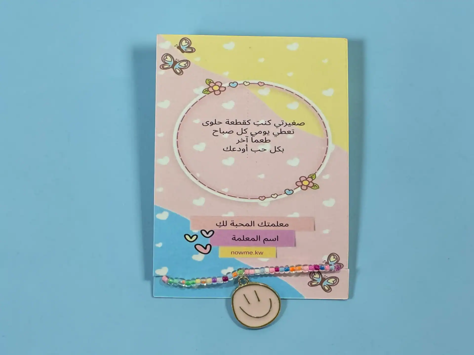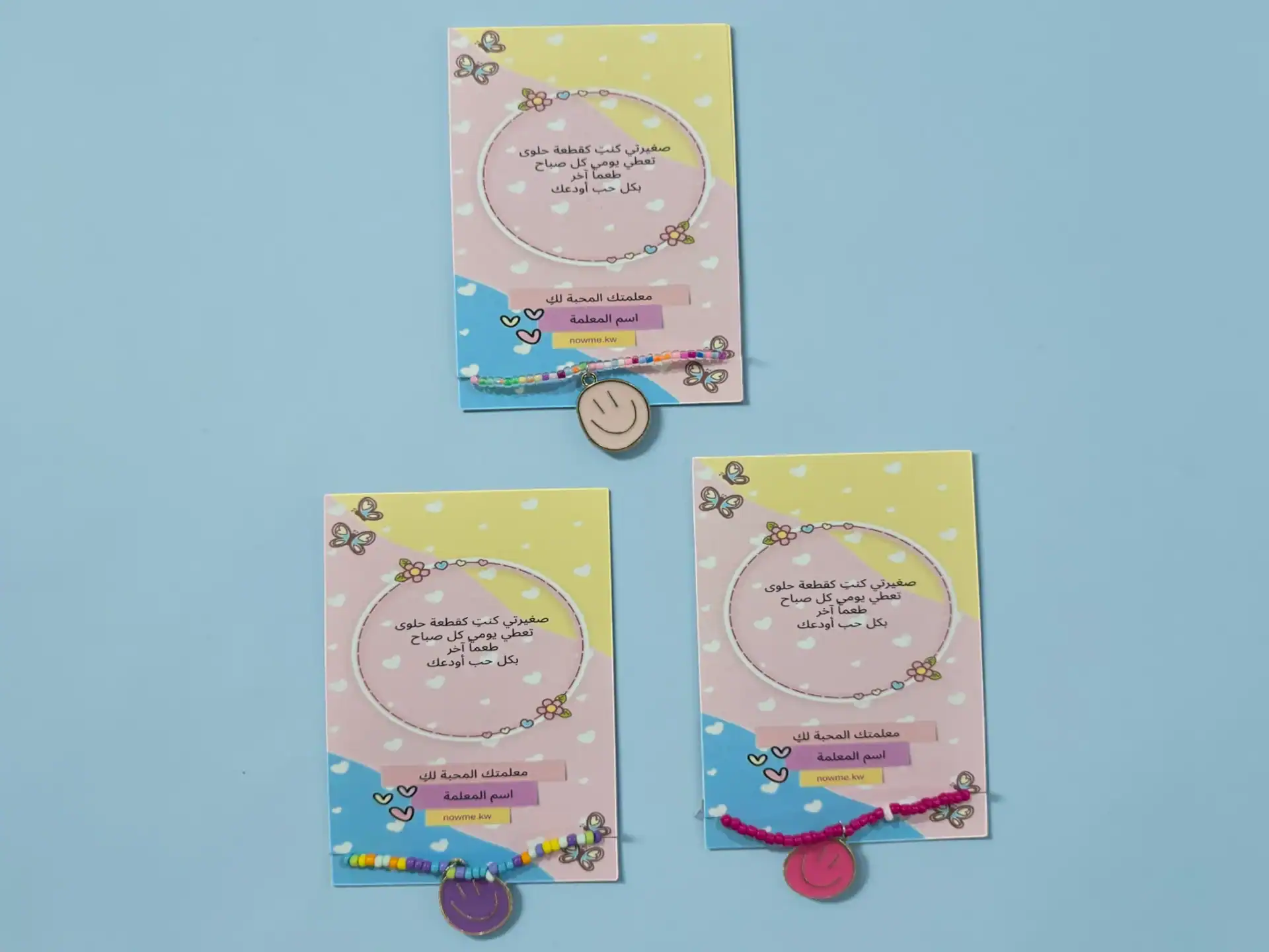 Colorful card favor with bracelet in Kuwait featuring a bright decorated card with a sweet message that can be customized, paired with a simple beaded bracelet that suits girls and students.