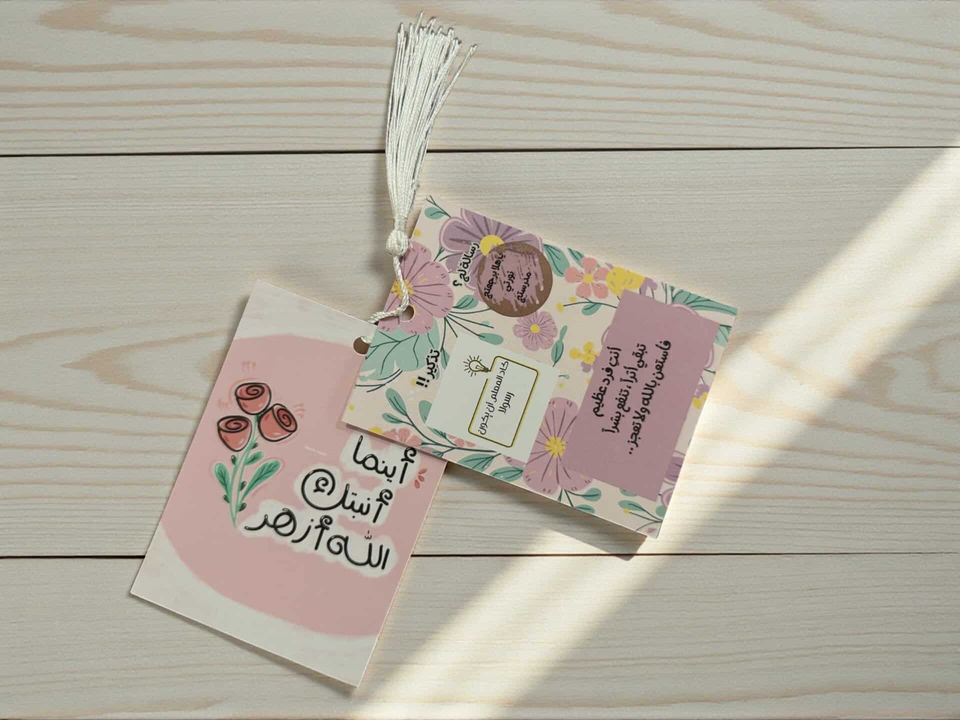 Hidden message favor in Kuwait featuring a fixed main card + one optional second card. The main card includes a reminder quote + a custom phrase (on request) and a scratch circle that reveals a hidden message, finished with an elegant tassel.