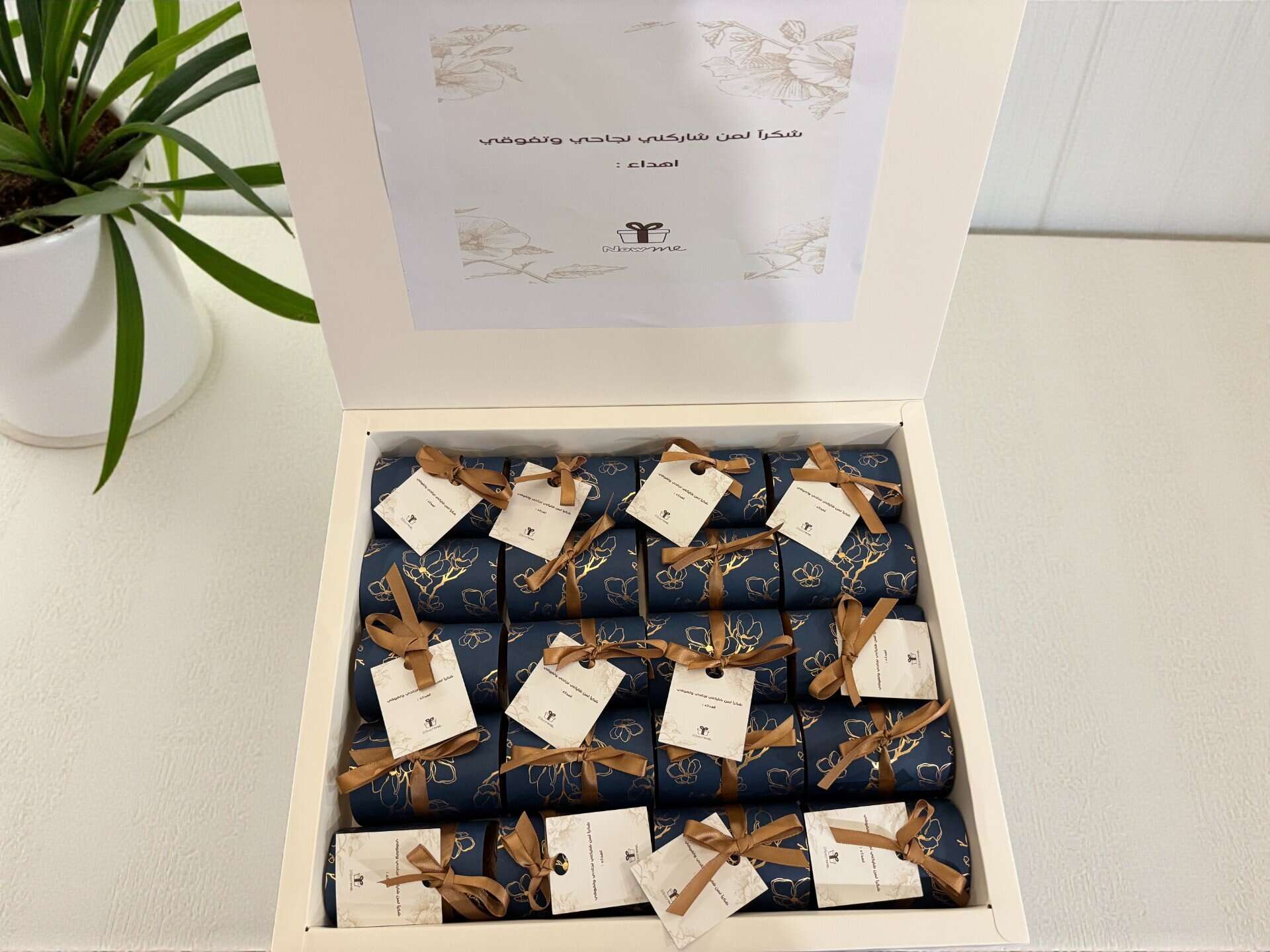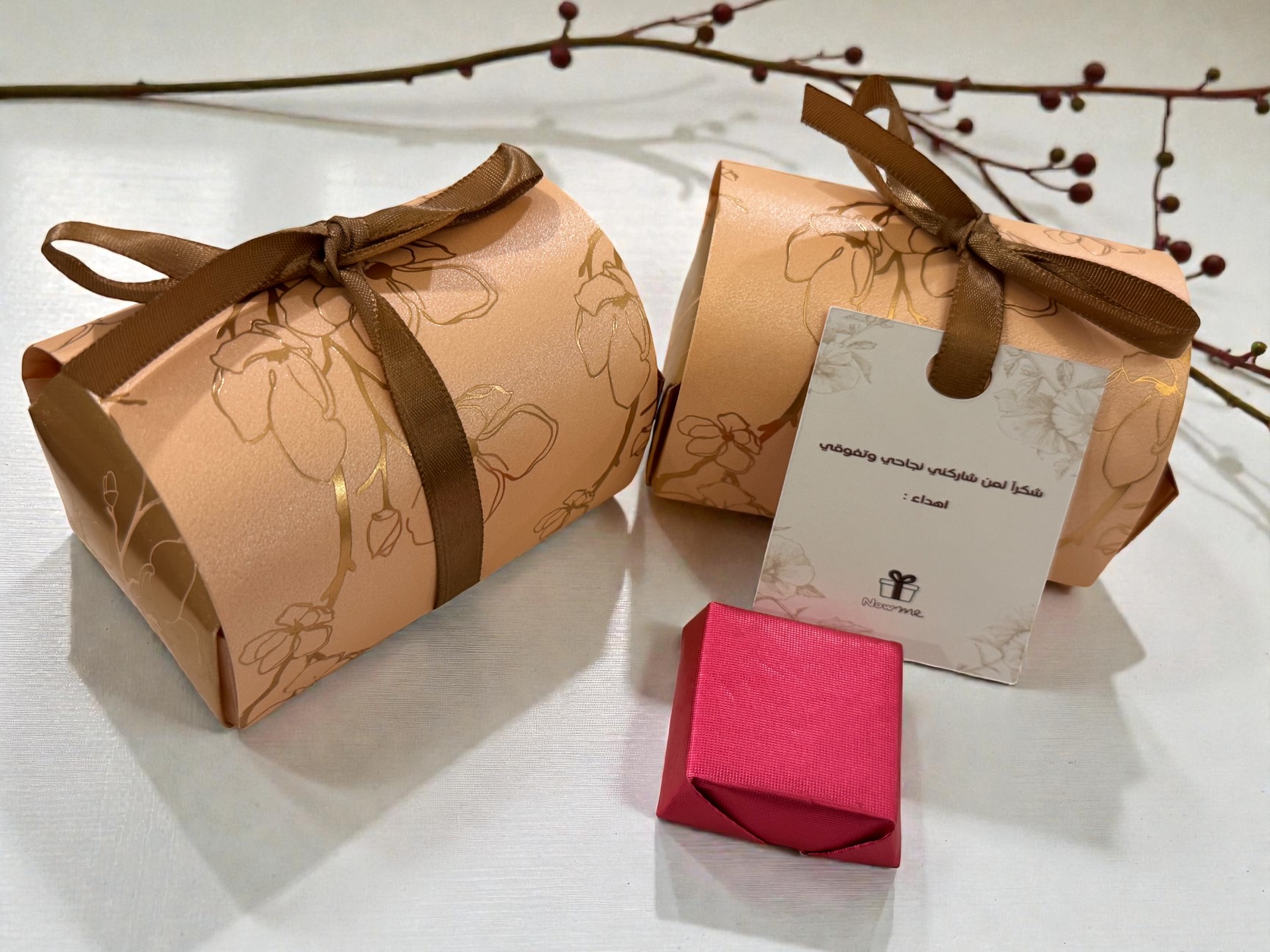 توزيعة بوكس شوكولاتة بلجيكي بتصميم راقٍ يناسب المناسبات المختلفة. اختاروا لون البوكس المفضل لديكم، مع إمكانية كتابة عبارة مخصصة على الكرت لتتناسب مع موضوع مناسبتكم.
