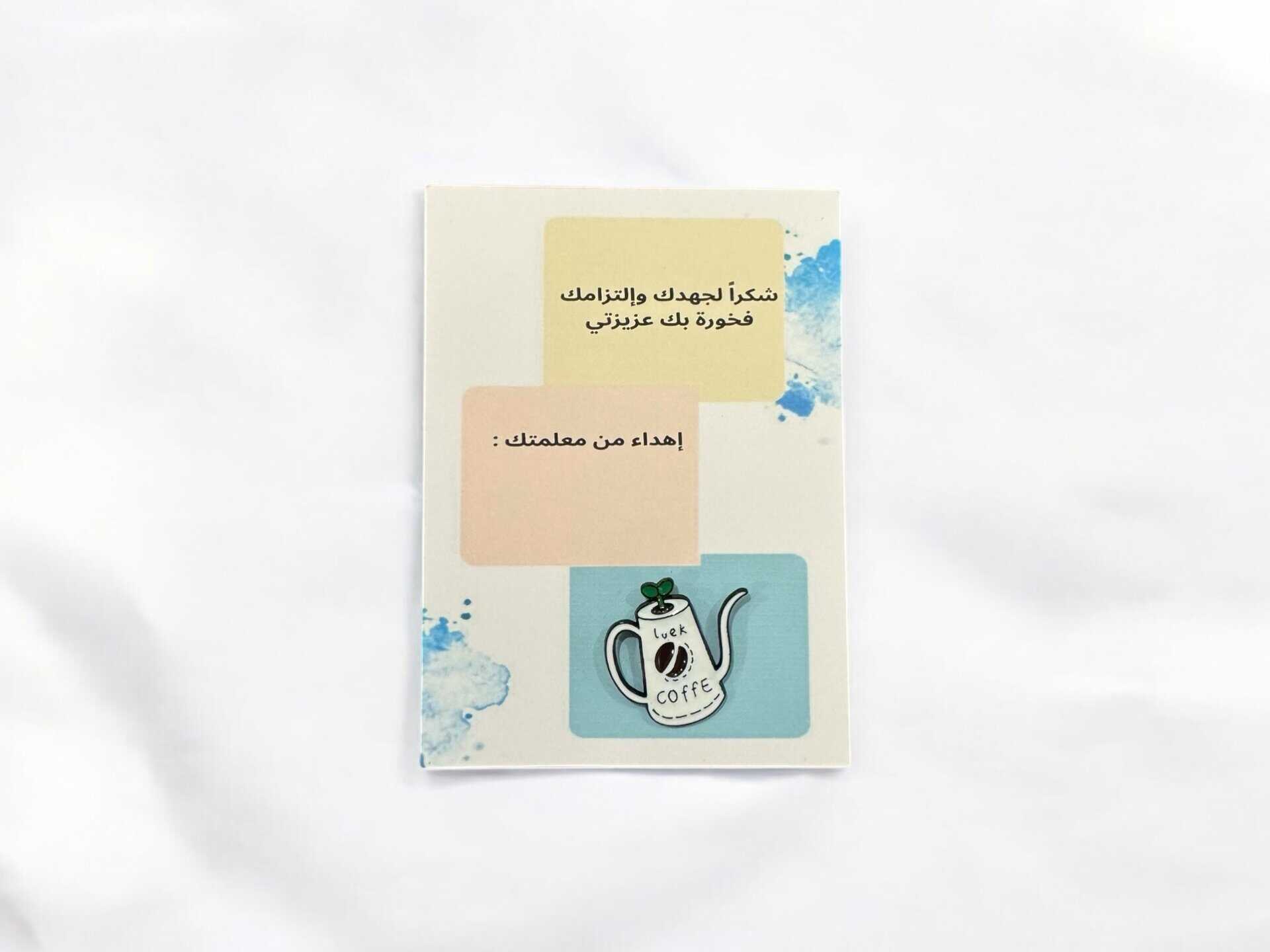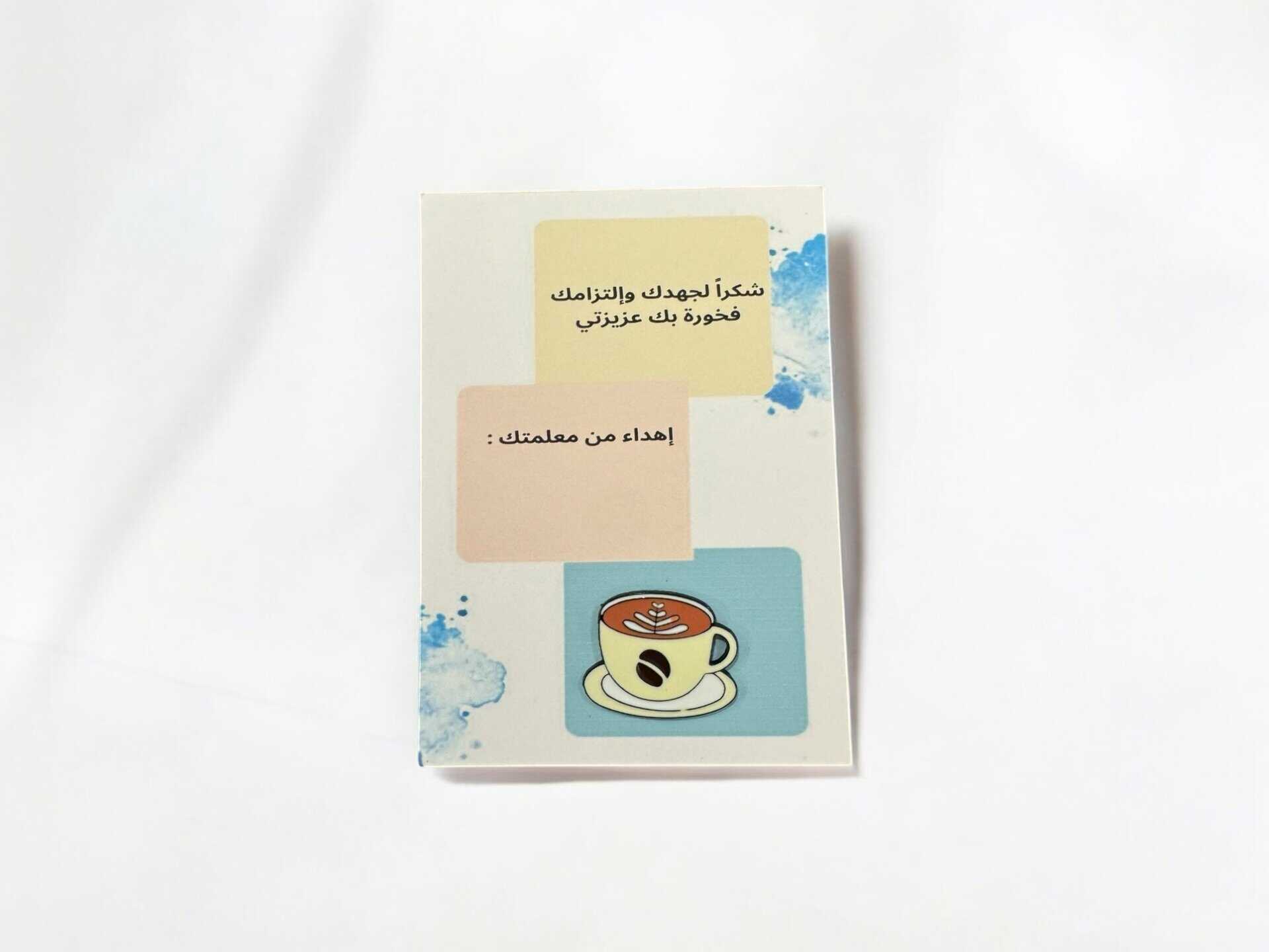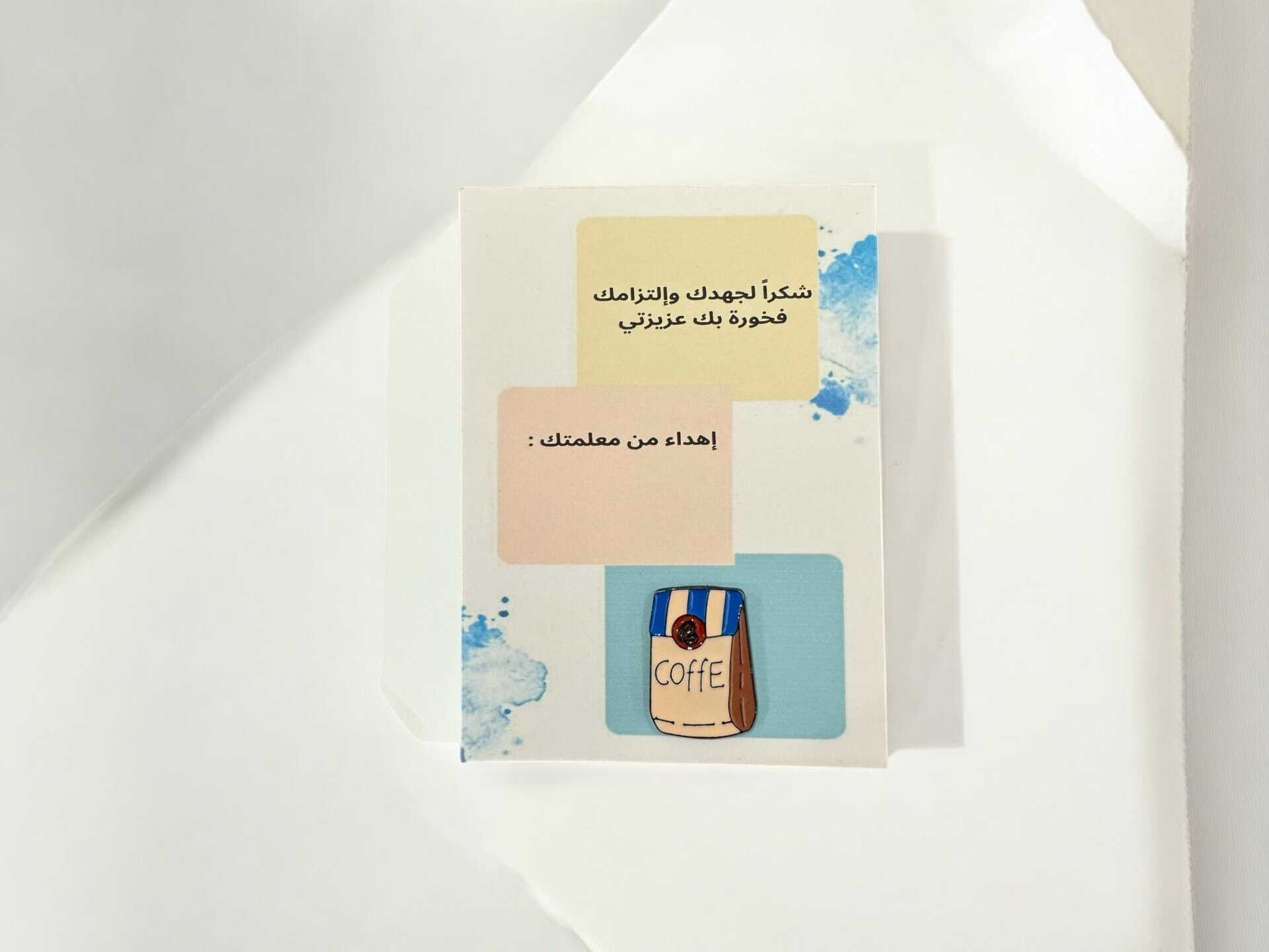 توزيعة دبوس القهوة هدية بسيطة ولطيفة تناسب تقريبًا أي مناسبة. يتكوّن كل طقم من كرت بتصميم هادئ ودبوس قهوة صغير يمكن تعليقه على الملابس أو الشنطة أو المقلمة. خيار مناسب إذا حابة توزيعة خفيفة وسعرها معقول لكن تعطي إحساس بالاهتمام والتقدير.