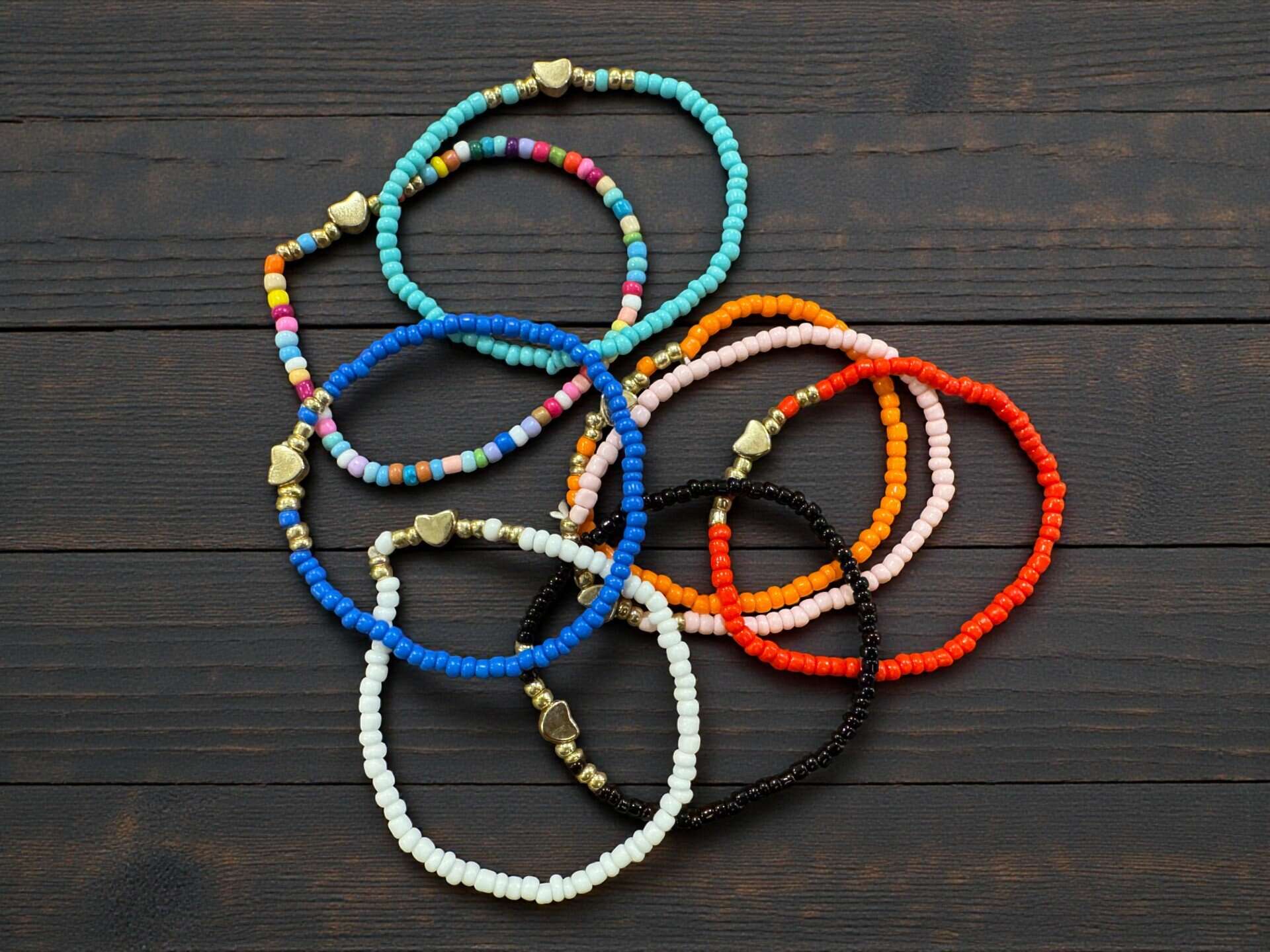 لكتابة الاسم والسنة. - اسوارة خرز جميلة بألوان متعددة مع حبة قلب ذهبية صغيرة تضيف