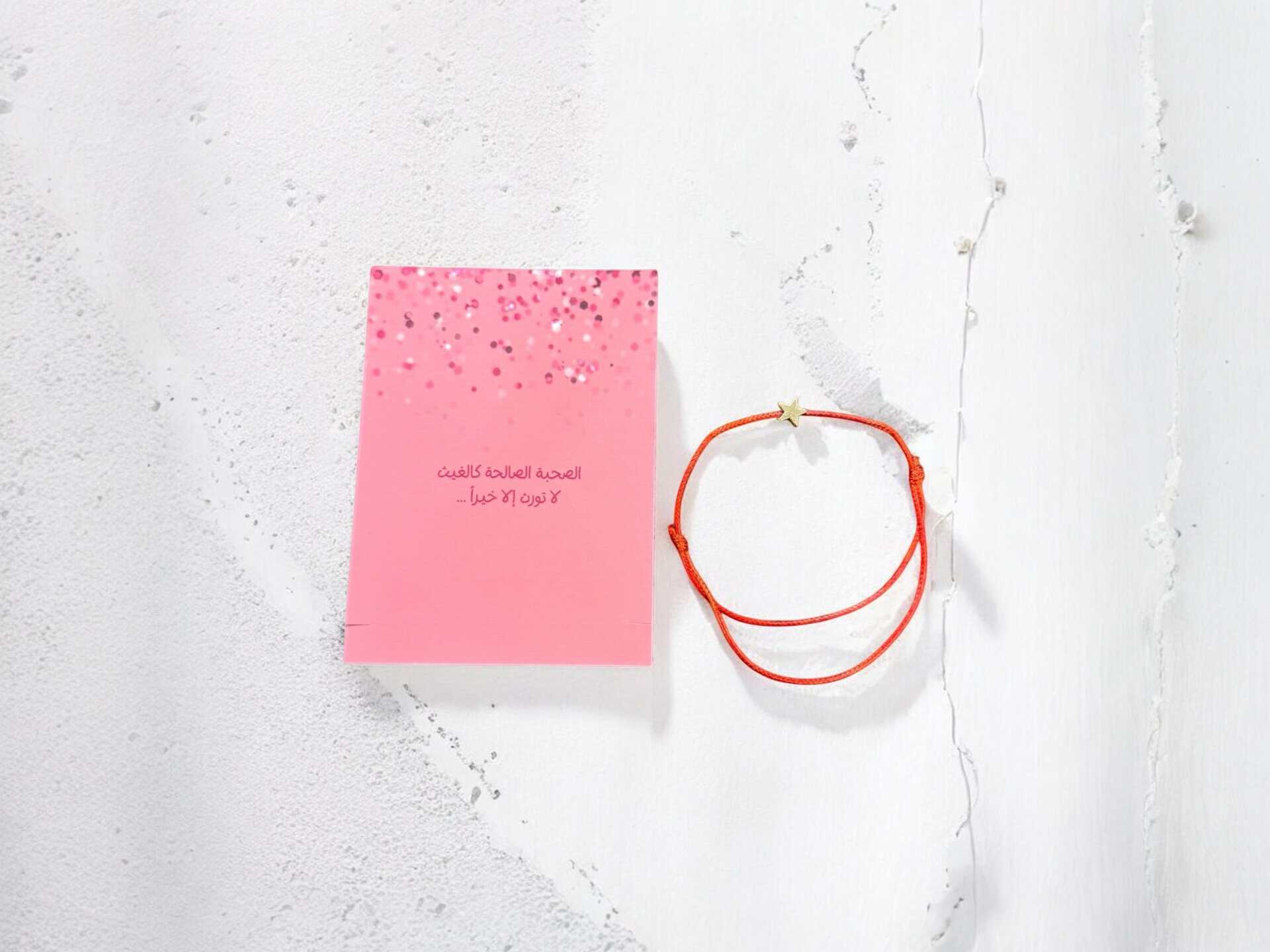 توزيعة كرت وردي مع سوارة (قلب أو نجمة)