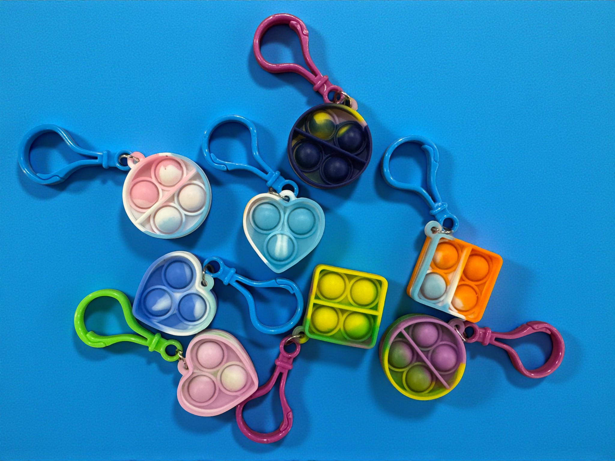 - ميدالية بابلز (Pop-it) بألوان وأشكال مختلفة حسب المتوفر.